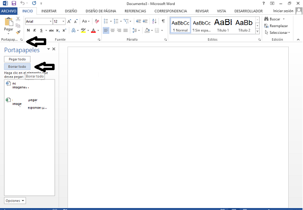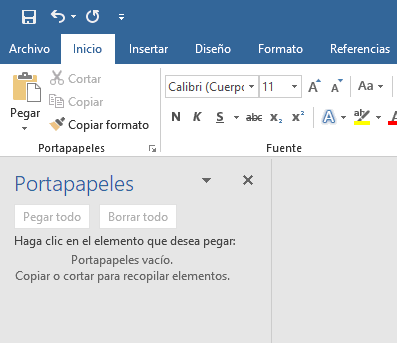 Vaciar portapapeles Word en Windows