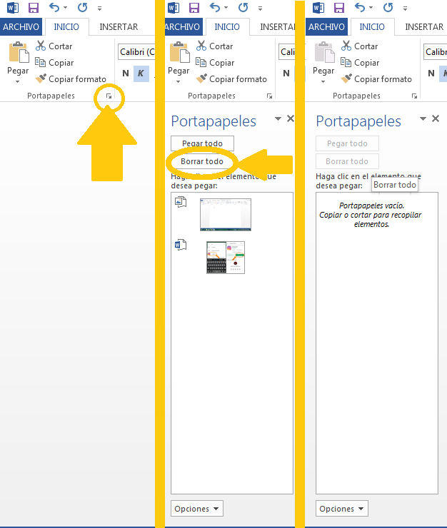 Una vez que hayas seleccionado esto, verás que el portapapeles ha quedado vacío.