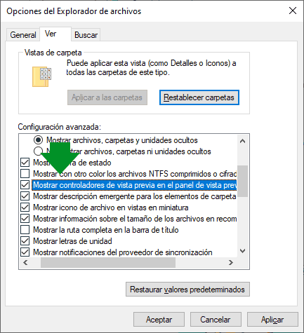 Si aun teniendo esto activado no te funciona, quizás no tengas activados los controladores de Vista previa. Ve aquí para solucionarlo: