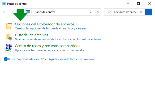 2--Escribe en el buscador superior “opciones de carpeta” y pulsa sobre “Opciones del Explorador de archivos”