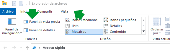 Una forma muy rápida para activar vista previa Word es usando la siguiente combinación dentro del Explorador de archivos: