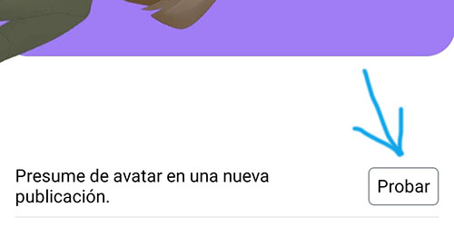Es cierto que, si no te sale la opción desde los Stickers de Facebook puedes crear tu Avatar a partir de uno que haya creado otra persona y compartido en el muro, ya que aquí vas a ver la opción “Probar”. Pulsas aquí y ya puedes comenzar a crear tu avatar personalizado en Facebook.