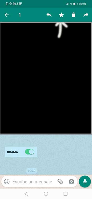 Guardar un Sticker de WhatsApp como Favorito es realmente sencillo, solo tienes que mantener pulsado el Sticker en cuestión y en la parte superior de la pantalla aparecen varias opciones. La estrella es la que se corresponde con favoritos. Así que pulsando sobre la estrella ya habrás establecido ese Sticker en concreto como favorito.