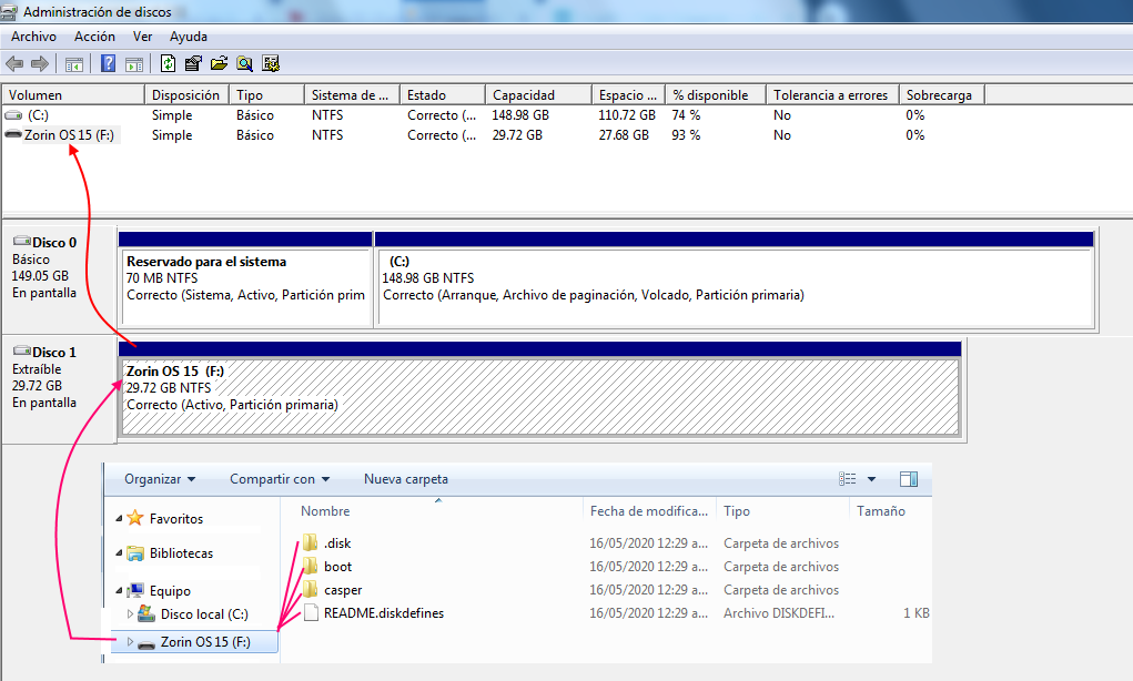 7.- ¡AYUDA! ... ¿como elimino permanentemente la partición o el boots creado con Zorin OS15 y recuperar mis 32 GB?