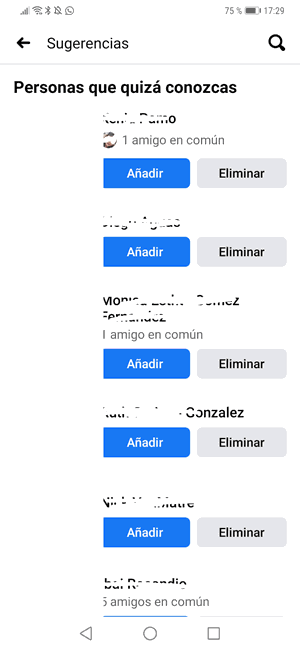 Ahora verás que te aparecen todas las sugerencias de amistad que tienes en Facebook.