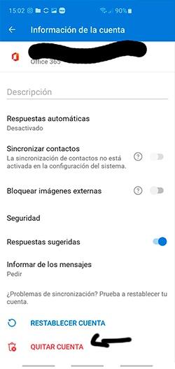 - Abajo elige Quitar cuenta. Elige una de las dos opciones teniendo en cuenta que “Del dispositivo” conserva los datos.