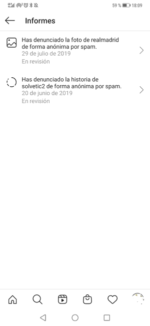 Ahí vas a poder ver todas las publicaciones que has denunciado en Instagram