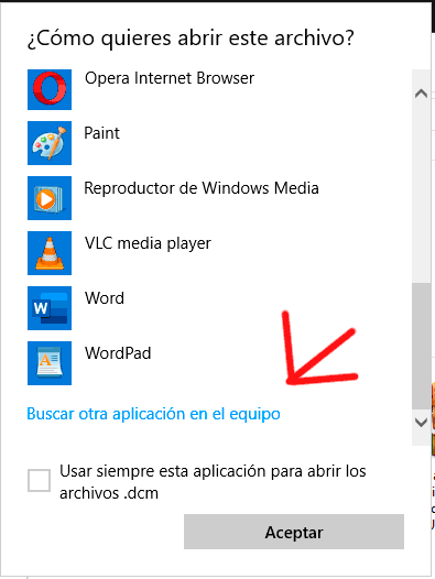 - Ahora si bajas hasta el final del listado de programas que te propone Windows 10, verás la opción de “Buscar otra aplicación en el equipo”. Si pulsas aquí ya podrás buscar el programa que es: