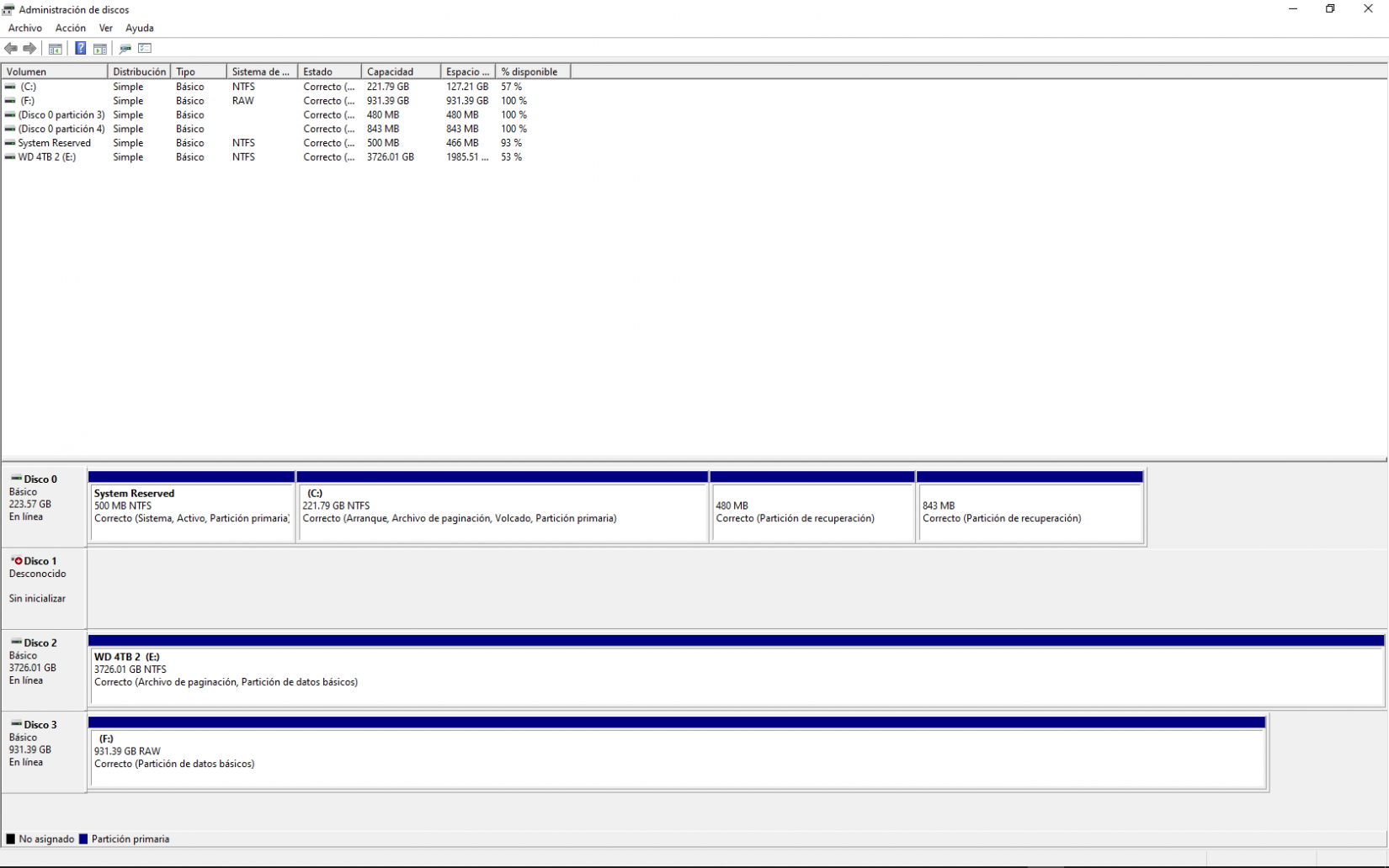 Disco Duro "D" desapareció Administrador de Discos, dice que debo inicializarlo MBR o GPT. "diskpart" y "list volume" nada