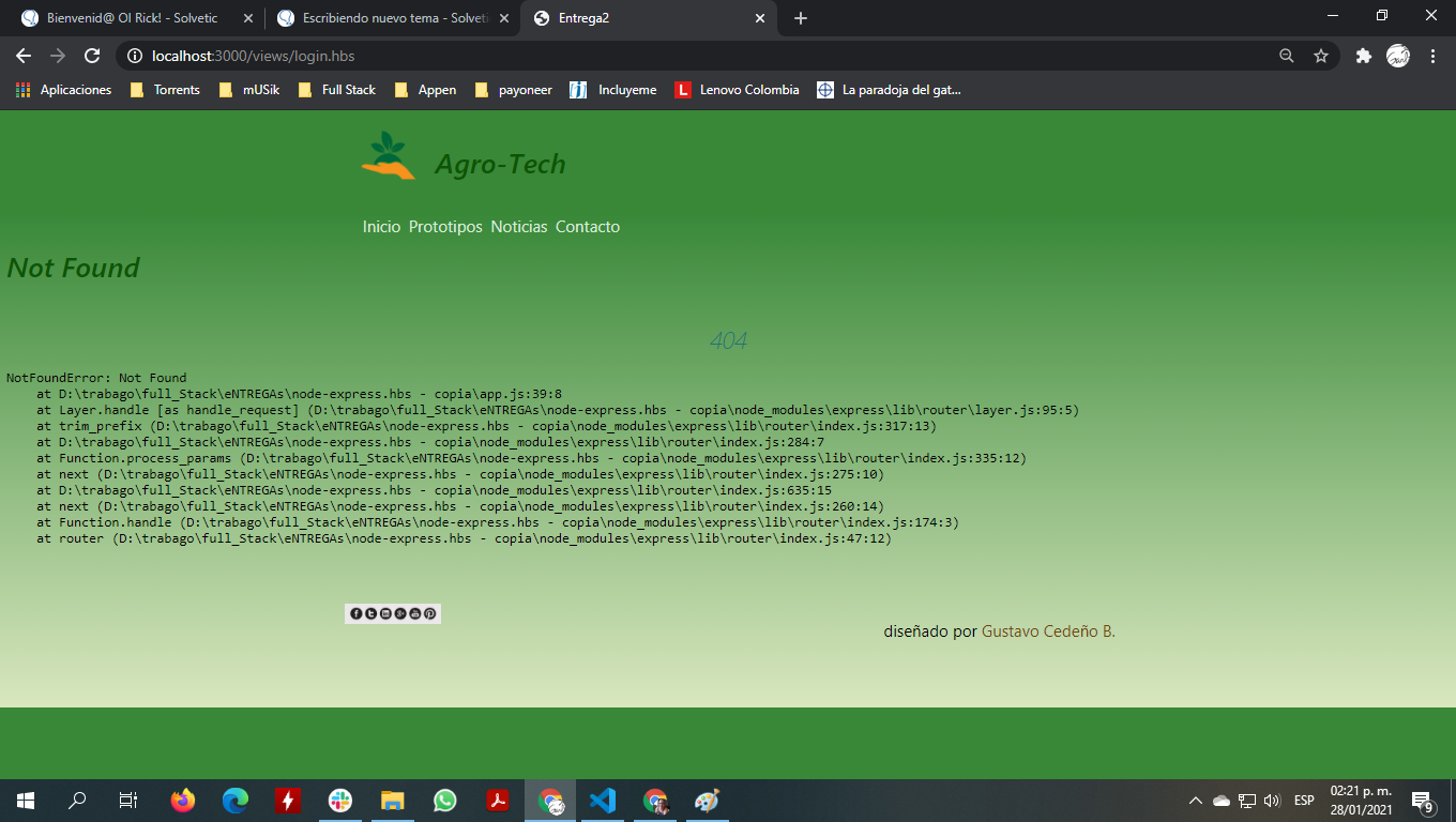 soy discapacitado y me becaron en full stack básico pero no tengo conocimientos anteriores, solo maquetación html5 y css3, pero con node-express-hbs no he podido enlazar una simple imagen que me dirige a otra página del mismo sitio (adjunto dos imagenes, la 1era es del enlace circular que dirije a la página extra; y la 2da es del error)