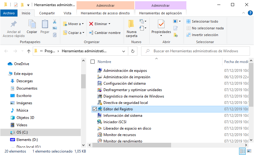 3. Verás en una ventana el ejecutable que abre el editor de registro