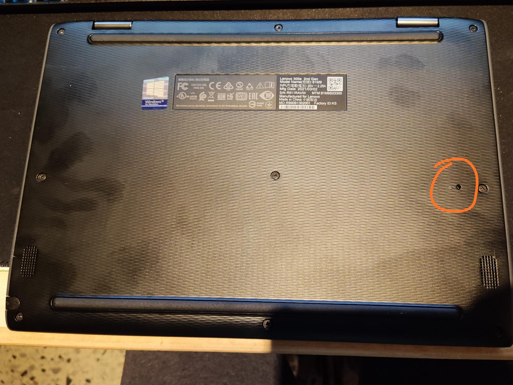 Para que sirve este agujero del portátil "Lenovo 300e 2nd gen"?