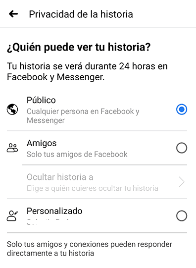Si no es esto lo que te pasa, quizás teniendo algún otro problema con las historias de Facebook porque esta configuración (la de desactivar las reacciones )que es solo para Instagram.