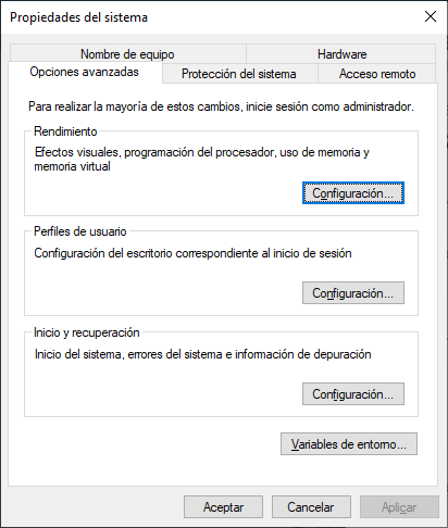 - Verás que aparece la Configuración Avanzada del Sistema.