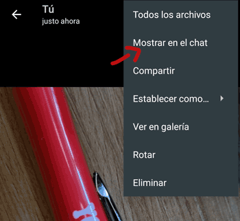 Esta opción es más útil si quieres saber el autor dentro de un grupo. Tendrías que entrar dentro de ese grupo y mirar la foto, podrías saber el autor de quién la envió o saber la fecha si es de un chat individual.