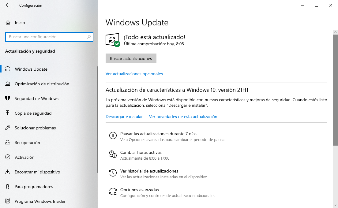 Inicio> Configuración> Actualización y seguridad> Buscar actualizaciones y las instalas.
