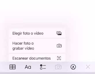 - Pulsa sobre el icono de cámara y aparecerá una ventana emergente, desde aquí ya tienes que pulsar en "Escanear documentos"