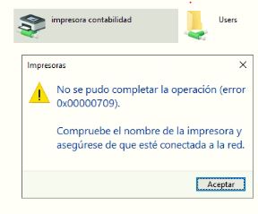 "No se pudo completar la operación error 0X00000709" Compruebe el nombre de la impresora y asegúrese de que este conectado a la red".