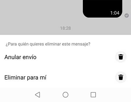 Anular envío solo para ti: Borra el mensaje de la conversación pero solo desde tu vista. La otra persona lo seguiría viendo.