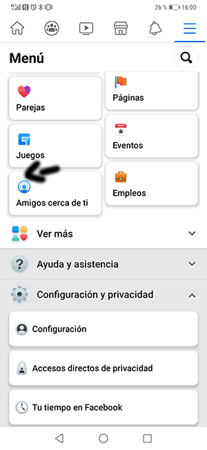 La configuración de los accesos directos de Facebook se configura en base a aquello que vas viendo con más frecuencia en la red social. En el caso de que haya desaparecido de esta configuración lo de amigos cerca, es posible que sea porque hace un tiempo que no lo utilizas.