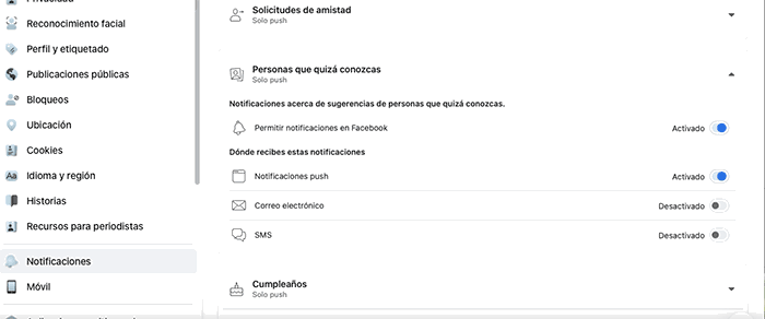 Es posible que Facebook no te sugiera amistades porque tengas desactivad este servicio en las notificaciones. Te pongo cómo hacer esto para que puedas revisarlo y ver si tienes esto activado o no.