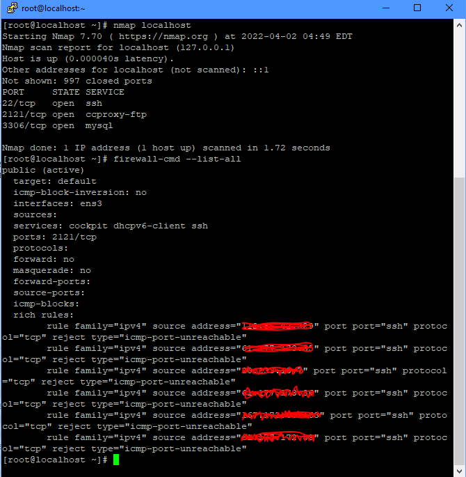 - firewall-cmd --zone=public --add-port=2121/tcp –permanent