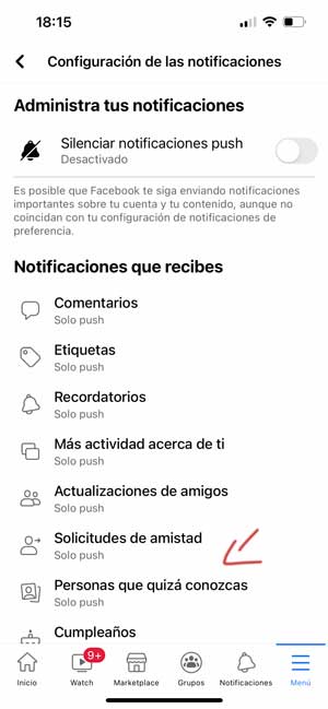 De todos modos hay una configuración que puedes probar a ver si la tienes activada, que son estas notificaciones que quizás si está desactivada puede ser otro de los motivos por los que no te aparezcan estas sugerencias de amistad en Facebook.