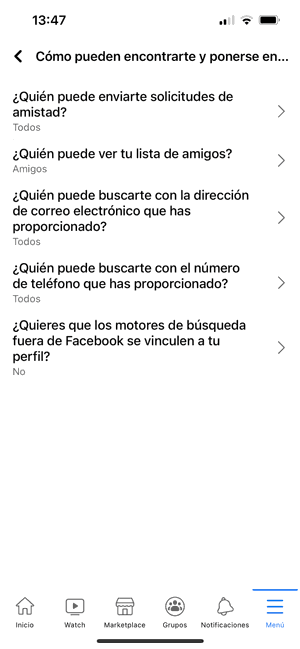 - Y ahora dentro de este apartado como pueden encontrarte y ponerse en contacto contigo otras personas.