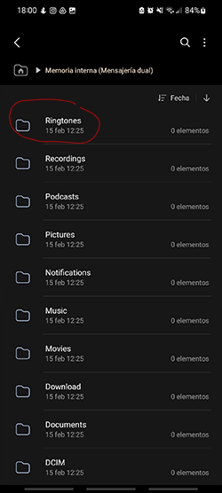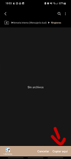 Vuelve a la ruta de “Mensajería dual – Ringtones” y pulsa en la opción que te pone “Copiar aquí”