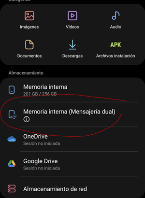 - Verás que tienes creado un apartado que se llama “Memoria interna (Mensajería dual)”. Entra aquí