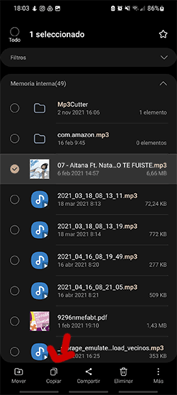 - Ahora mantienes presionado el archivo y le das a “Copiar”