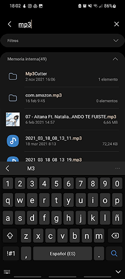 - Una opción fácil para mover o copiar esos tonos a esta carpeta es que desde ese gestor de “Mis archivos” busques con la lupa directamente el archivo de sonido o audio.