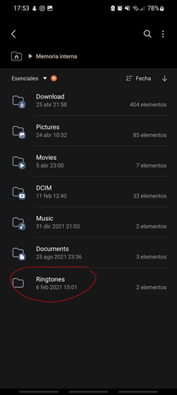 Para que puedas mover estos tonos a esta carpeta, tienes que entrar en Mis archivos” y busques con la lupa el archivo de sonido o audio.