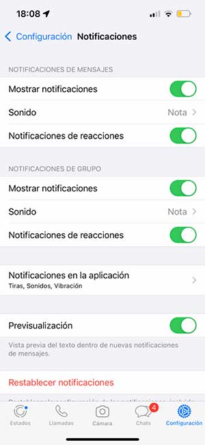 En ese caso lo que este quizás pasando sea un problema de permisos. Lo que te recomendaría en este caso es que mires los permisos de notificaciones y tonos y compruebes si están correctamente activados.