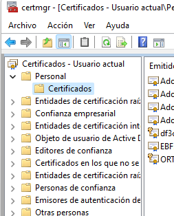 ahi te saldrán todos tus certifcados personales que te hayas instalado en Windows 11.