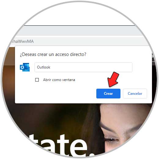 Asignamos un nombre al acceso directo y da clic en "Crear":