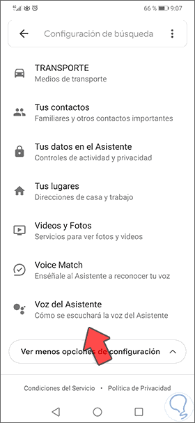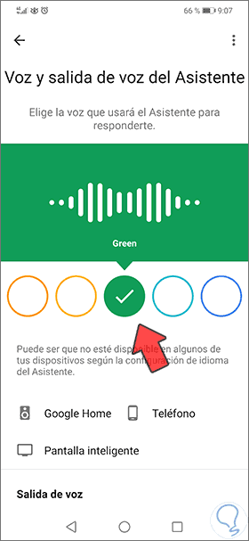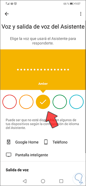 En las siguientes opciones pulsamos en "Voz del asistente":