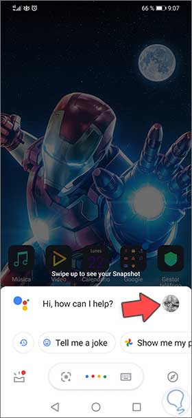Para lograr esto pulsamos en el botón de Inicio en Android por 2 o 3 segundos, luego pulsamos en alguna de las opciones del asistente de Google: