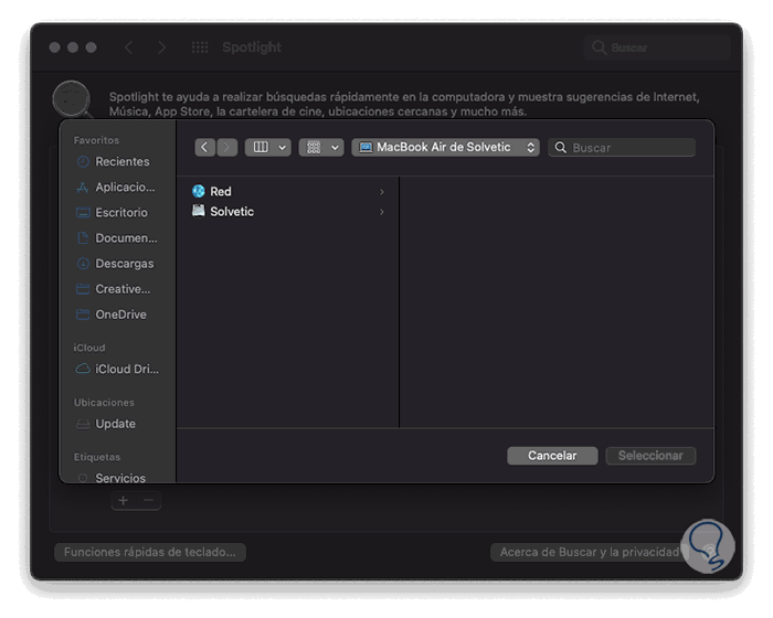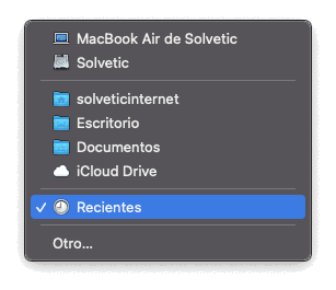 Allí seleccionamos la nueva ubicación y damos clic en Seleccionar para desactivar por completo Recientes en macOS.
