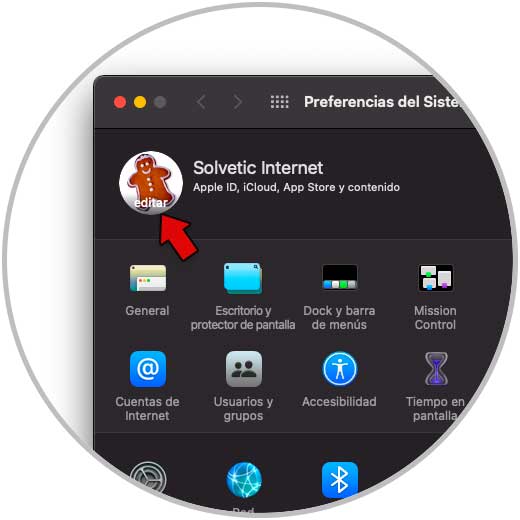 Pasamos el mouse sobre el perfil de Apple ID y se activara la opción "editar":
