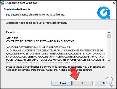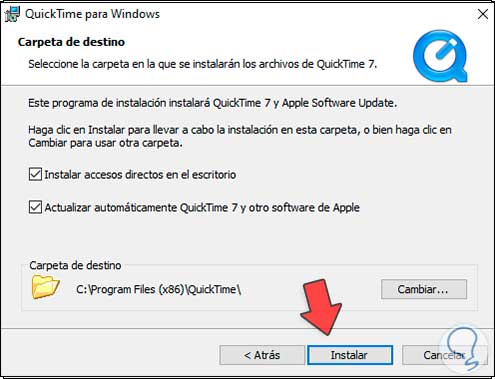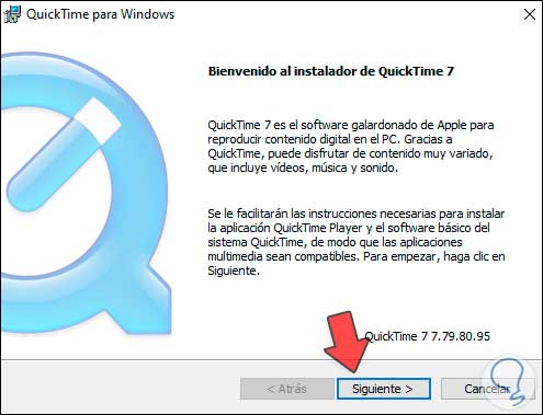 Se dará paso a la instalación de QuickTime en Windows 10: