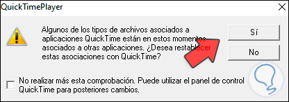 Allí definimos si deseamos o no asociar los archivos y accederemos a QuickTime: