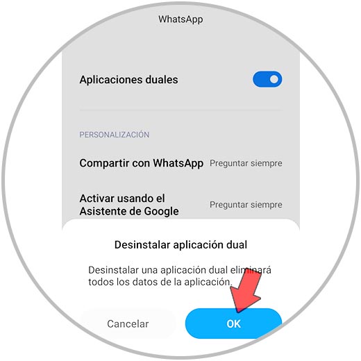 En el caso de que quieras eliminar la app duplicada, simplemente repite el proceso y desactiva la pestaña. Verás una pestaña emergente para confirmar esta acción.