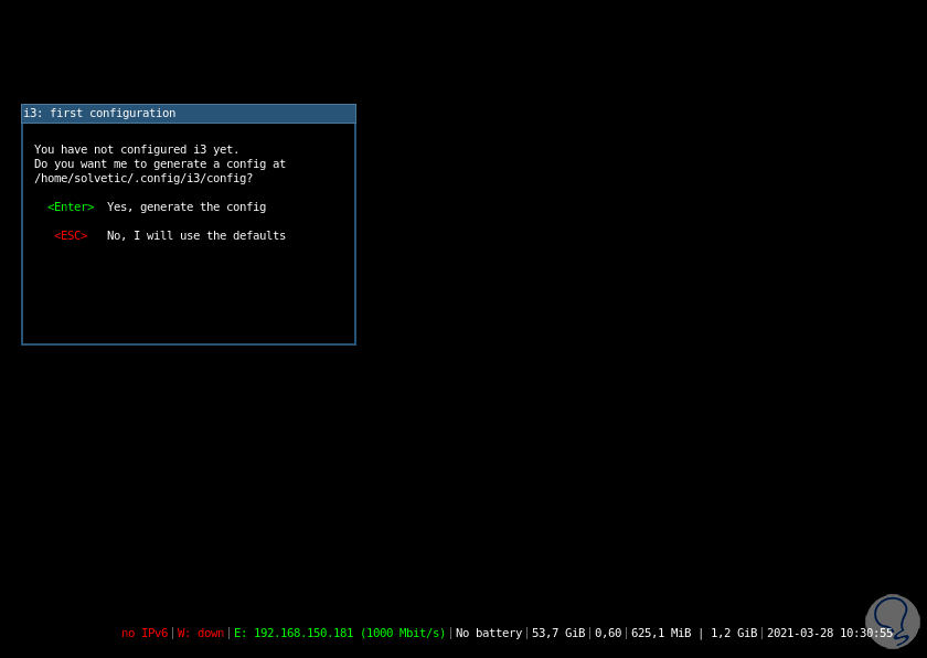 Iniciamos sesión y al acceder pulsamos Enter para crear el archivo de configuración: