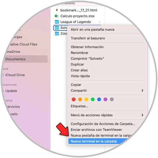 Para su uso, damos clic derecho sobre alguna carpeta y seleccionamos "Nuevo terminal en la carpeta" para abrir esa carpeta en la terminal: