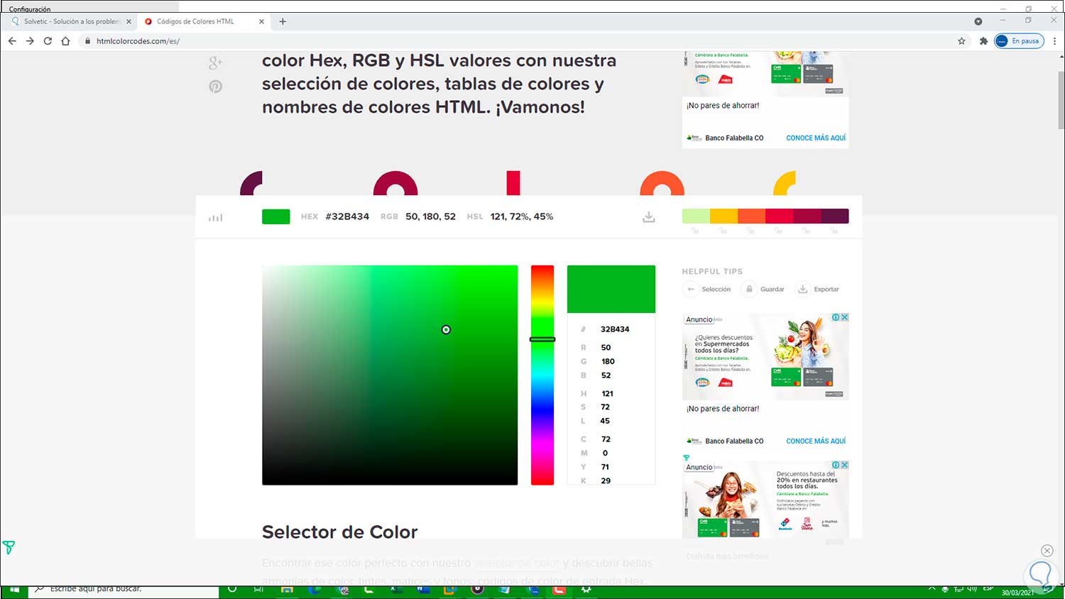 Es posible ingresar el código hexadecimal o RGB del color deseado, para esto iremos a la siguiente URL: