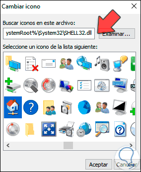 Damos clic en "Cambiar icono" y luego seleccionamos un nuevo ícono para el acceso directo: