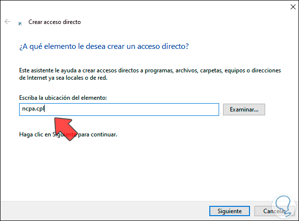 En la ventana emergente ingresamos "ncpa.cpl" en la ubicación: