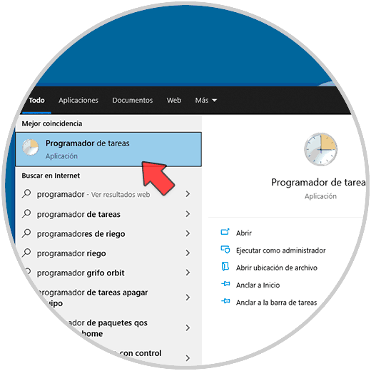 Seleccionamos "Programador de tareas", la consola del Programador de tareas se vera de la siguiente forma: