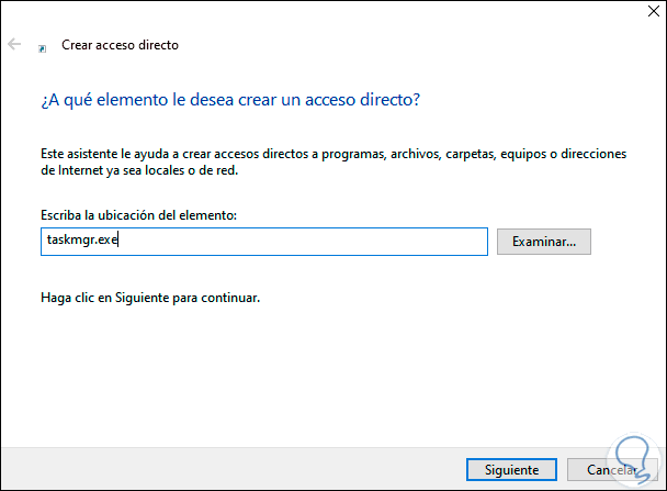 2. Crear acceso directo Administrador de tareas Windows 10 desde Explorador